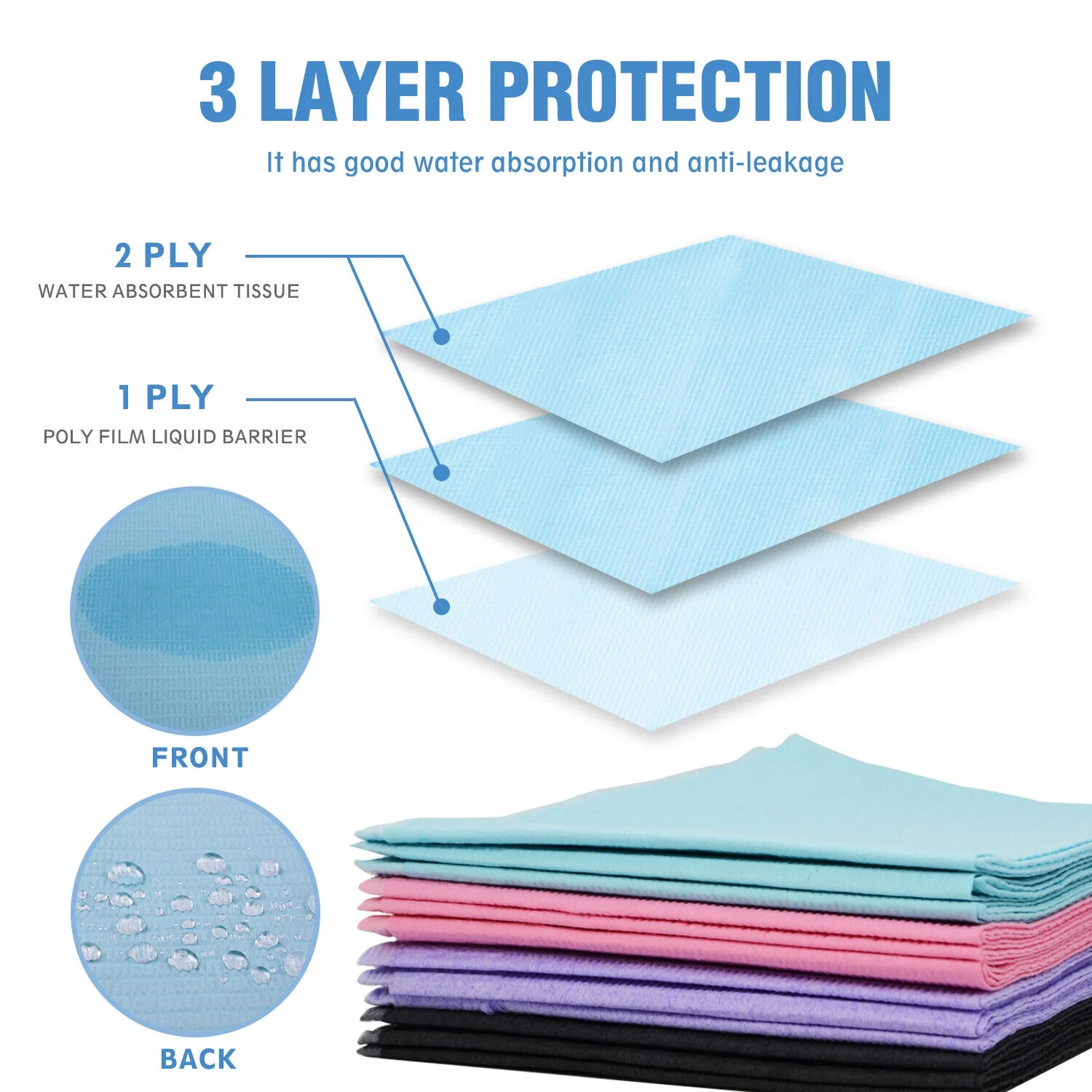 Triple Layer Protection: Composed of 2 ply tissue and 1 ply polyethylene film backing, 2 ply water absorbent tissue and 1 ply water resistance layer will help in absorbing liquid and avoiding spills.