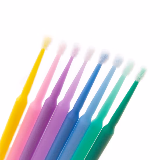 Material:100% Nylon,Imported Nylon brush tip+New PP handle.The product is mainly composed of plastic rod and nylon wool bonded by resin. Plastic rod is molded by polypropylene injection molding, which is divided into rod, neck and head. The head of plastic rod is bonded by resin to form nylon wool ball. Size: Regular 2.5mm;Fine 2.0mm;Superfine 1.5mm; Cylinder 1.2mm Storage: Stored in dry, humidity below 80%, ventilated, non-corrosive gases warehouse Advantage: Bendable and disposable applicator for cavity lining, bonding, etching, fluoride varnishing, No hair loss
